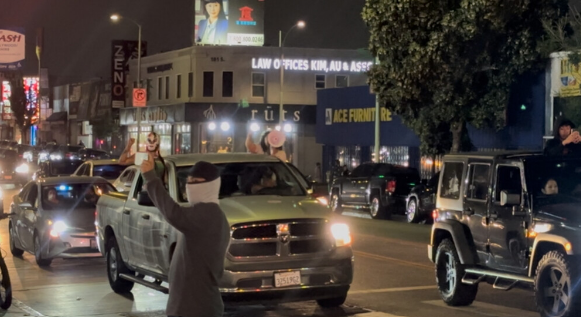 시위대의 한인타운 진입 (밤 9시경):